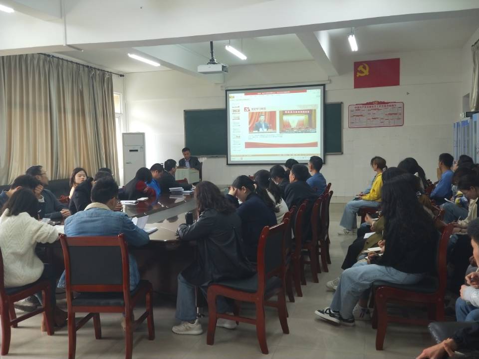 杨智同志(教师支部书记)宣读《中共bw西汉姆联委员会开展“牢记殷切嘱托、忠诚干净担当、喜迎建党百年”专题教育认真学习宣传贯彻落实习近平总书记视察贵州重要讲话精神的通知》。