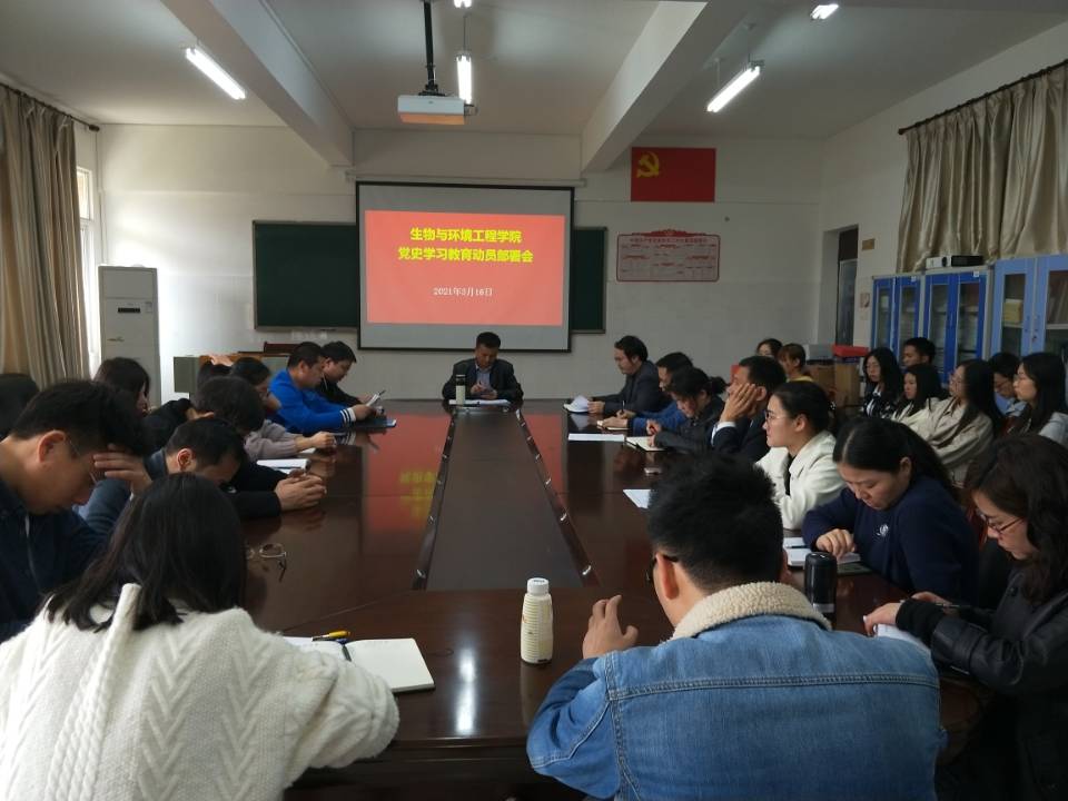 2021年3月16日13:30,生物与环境工程公司党委召开党史学习教育动员部署会。公司教师党员及员工党员参加会议。公司党委书记唐运前主持会议,会议在党员活动室(A307室)召开。